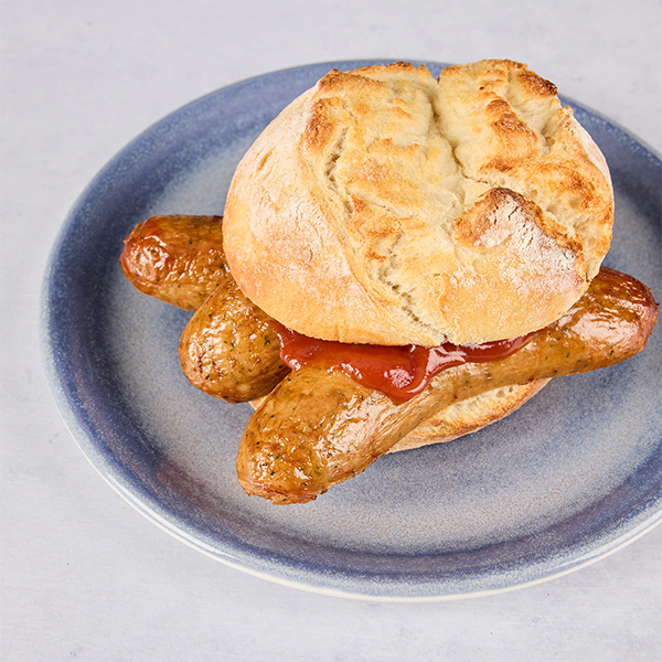 Cumberland sausage in a potato roll served with a choice of ketchup or brown sauce. 660kcal