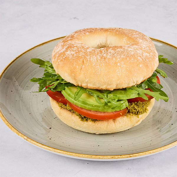 Avocado slices, tomato, green pesto and rocket. 348kcal